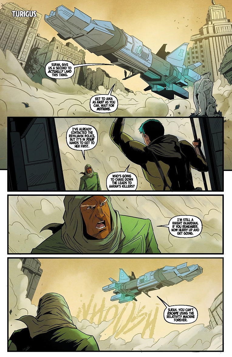 “Writers Gareth R. Roberts and Taran Chadha have created an engaging narrative that features mystery and action wrapped up neatly in a time traveling/sci-fi package. Roberts and Chadha introduce some of the Guardians via flashbacks and also provide the framework around the do’s and dont’s surrounding time travel. It’s an interesting case of world building and Roberts and Chadha do a good job of mixing science, adventure and human frailty in their script.” – Comic Asylum | FULL REVIEW